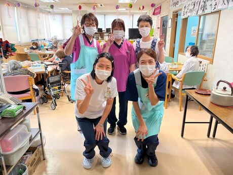 医師、看護師、介護スタッフ、リハビリスタッフ、送迎ドライバー、事務員等が連携しながらサービス提供に努めています。