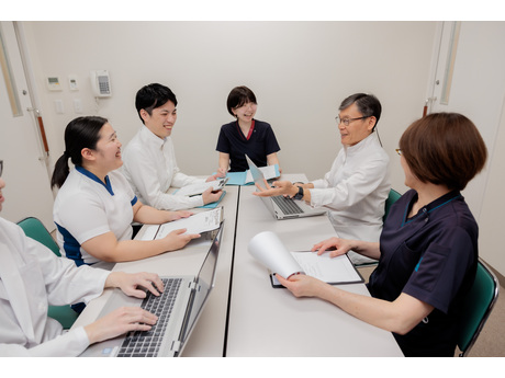 患者様とご家族の意向や希望を医師・看護師・リハビリスタッフ・MSWで共有し、それぞれの専門職の目線から解決すべき課題や必要となるサービスを考えます。退院後も安心して生活できる支援を多職種が連携して検討しています。